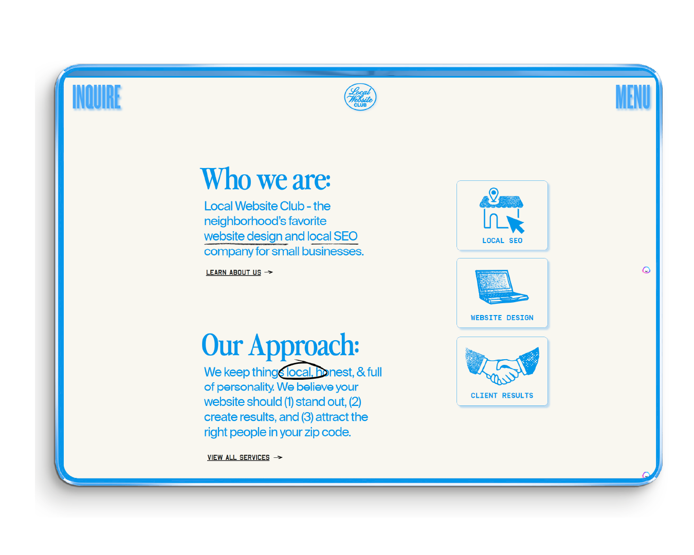 I started Local Website Club to give local business owners more impact with their online marketing. I wanted to give them a real shot at standing out and growing online. We take a focused, strategic approach: custom websites, monthly SEO, and paid ads that connect you directly with the people searching nearby. It’s not about flashy marketing—it’s about clear messaging, smart strategy, and making sure your business shows up and earns trust. We highlight what makes each brand different, and we build online ecosystems that turn visibility into real results.